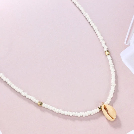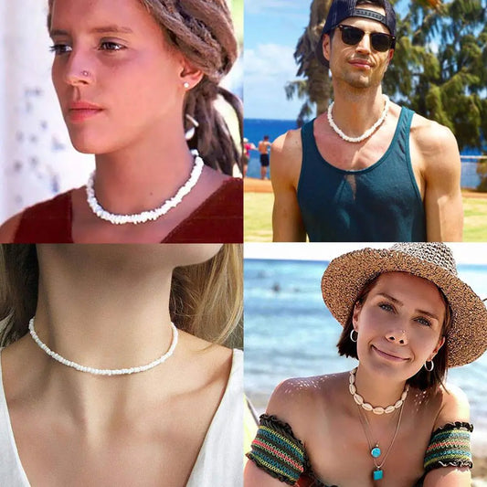 Bohemian Hawaii Puka White Clam Chips Shell Necklace