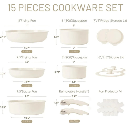 CAROTE 15pcs Pots and Pans Cookware Set w/ Detachable Handle, Induction Nonstick Kitchen Cookware Sets
