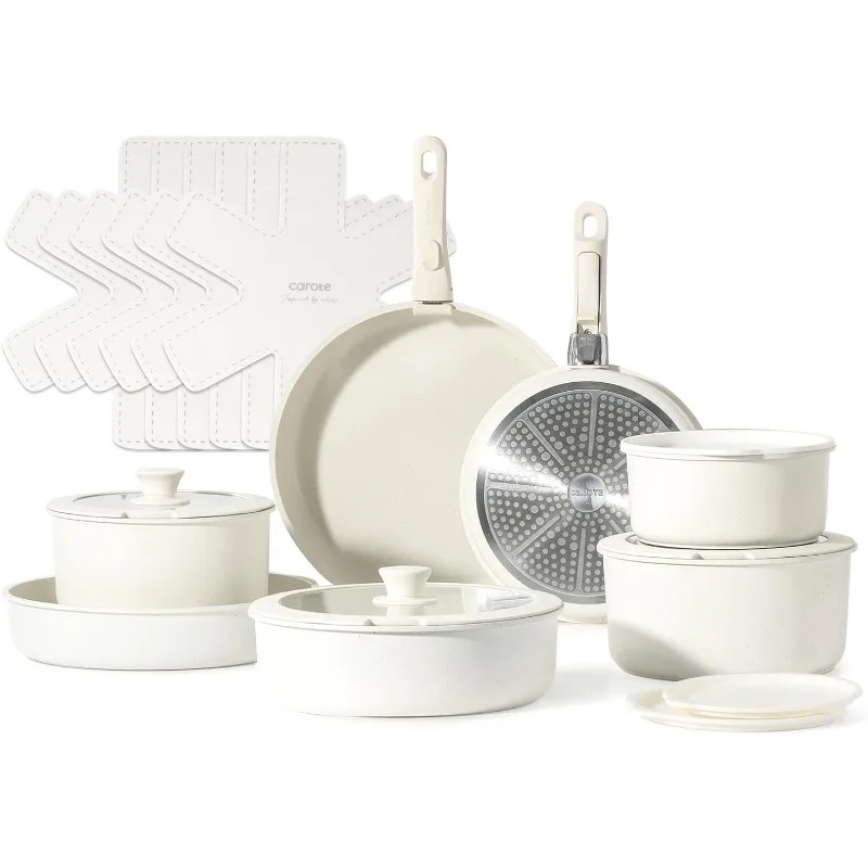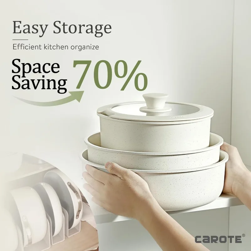 - You Won't Compromise on Quality: Balanced convenience-rich features, rapid&even heat transfer, and nonstick performance as the same as other Carote cookware sets.