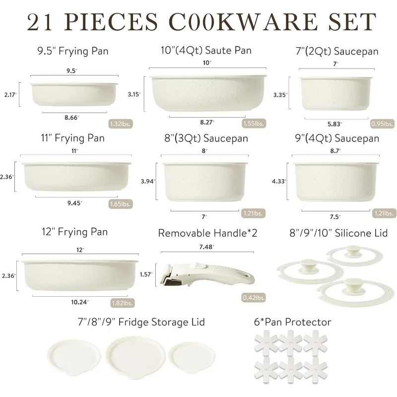 CAROTE 21pcs Detachable Handle Pots and Pan Set, Nonstick Induction Cookware